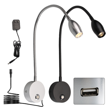 3w מנורת קיר עם יציאת sb gooseneck ראש המיטה ליד מיטת מנורת קיר גמיש מנורה
